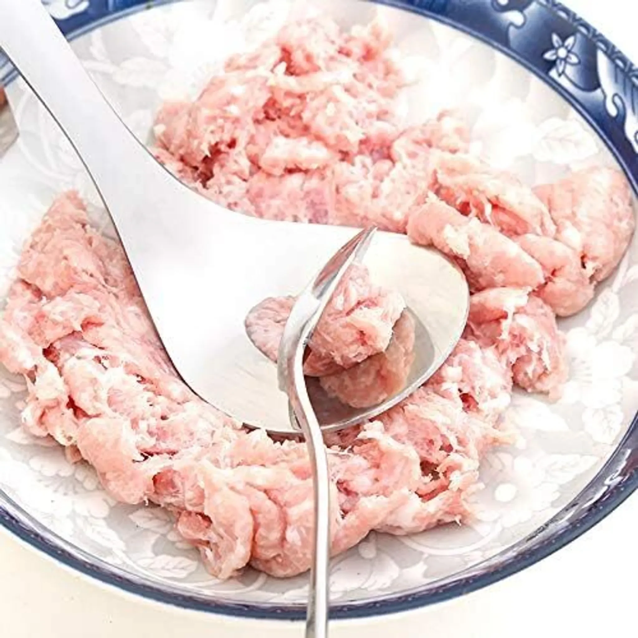 Diese robuste Fleischzange mit integrierter Knödelform ist ideal zum gleichmäßigen Portionieren und Formen von Fleisch-, Fisch- oder Gemüsebällchen. Das ovale Formdesign sorgt für saubere, gleichgroße Ergebnisse bei minimalem Aufwand.