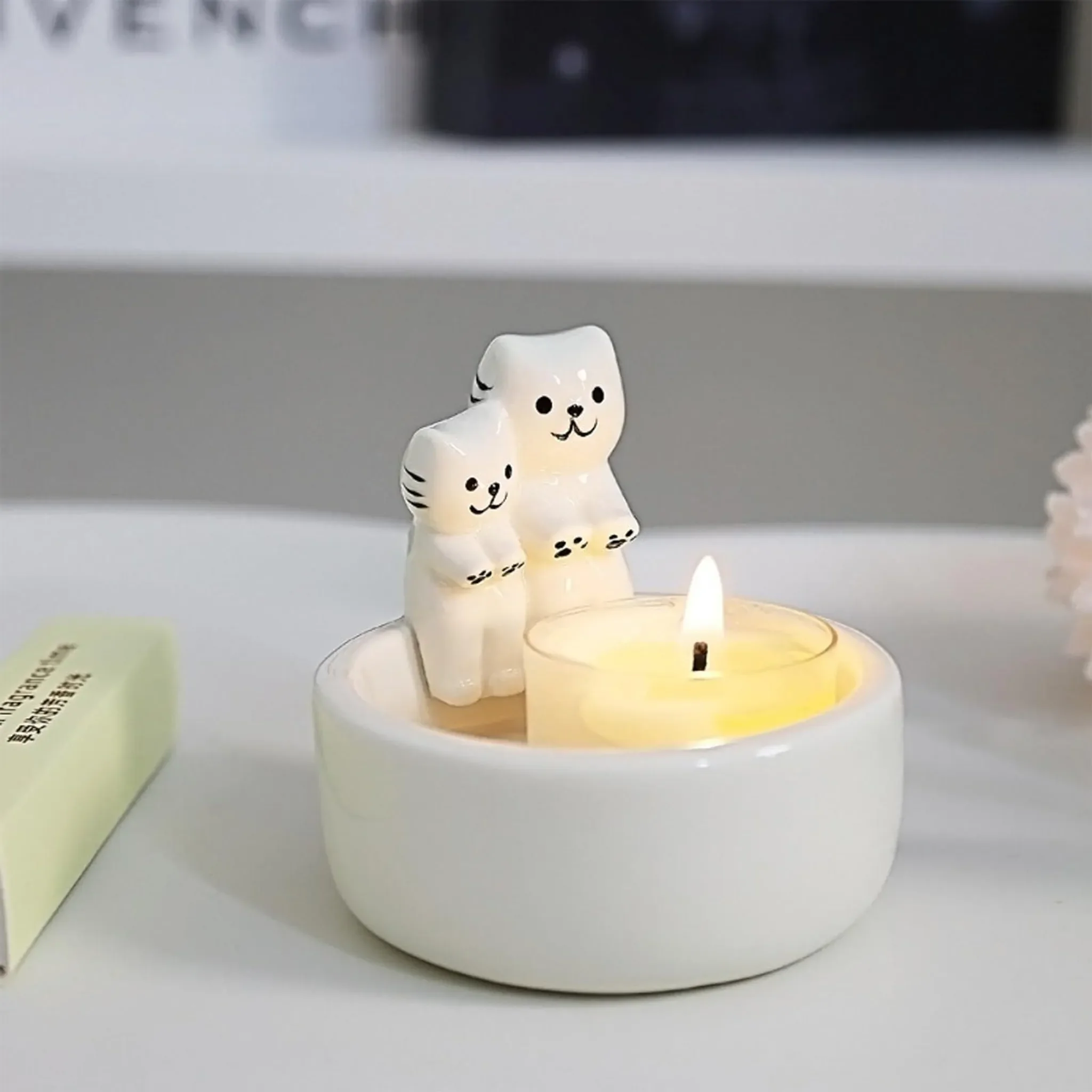 Kerzenständer in Katzenform – Kawaii Kerzenhalter aus Keramik
