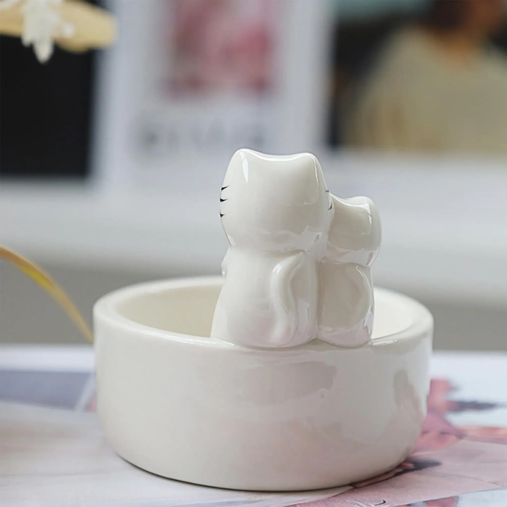 Gefertigt aus hochwertiger, glänzender Keramik überzeugt der Kerzenständer durch seine sanfte Form und stabile Verarbeitung. Ideal für Teelichter geeignet, sorgt er für stimmungsvolles Licht und ist zugleich ein liebevolles Geschenk für Katzenliebhaber und Paare.