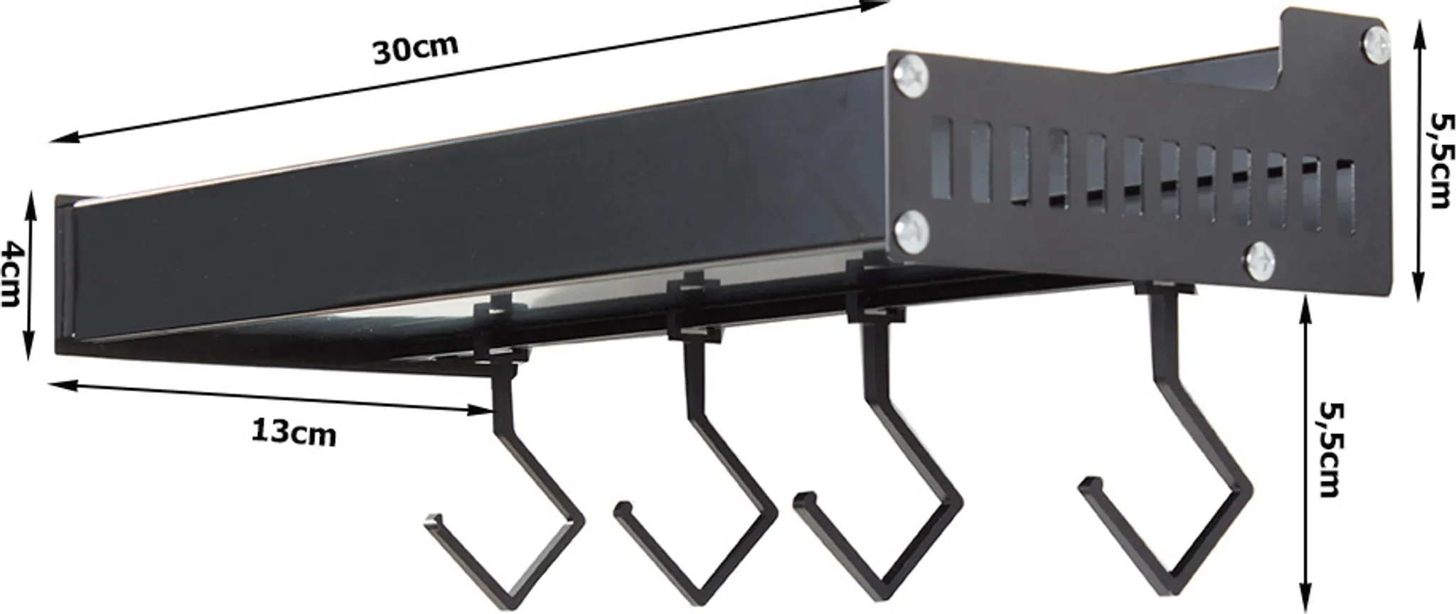 Multifunktionales Wandregal – Schwarz, 30 cm