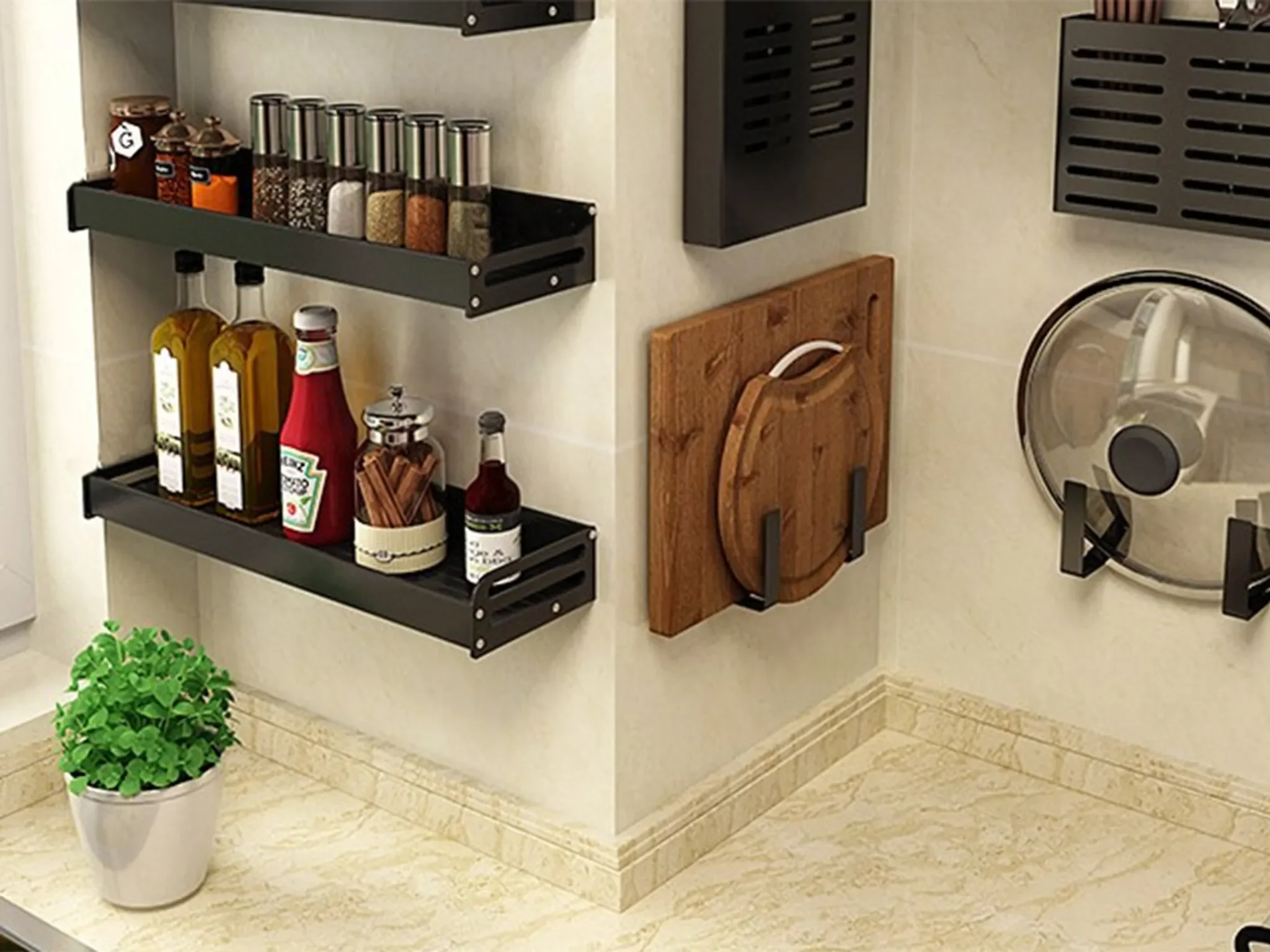 Dieses solide gefertigte Wandregal überzeugt durch seine vielseitige Einsetzbarkeit in Küche, Bad, Flur, Schlafzimmer oder Büro. Die robuste Konstruktion aus pulverbeschichtetem Aluminium ist rostfrei, langlebig und bietet eine stabile Ablagefläche für Gewürze, Kosmetik oder Deko.