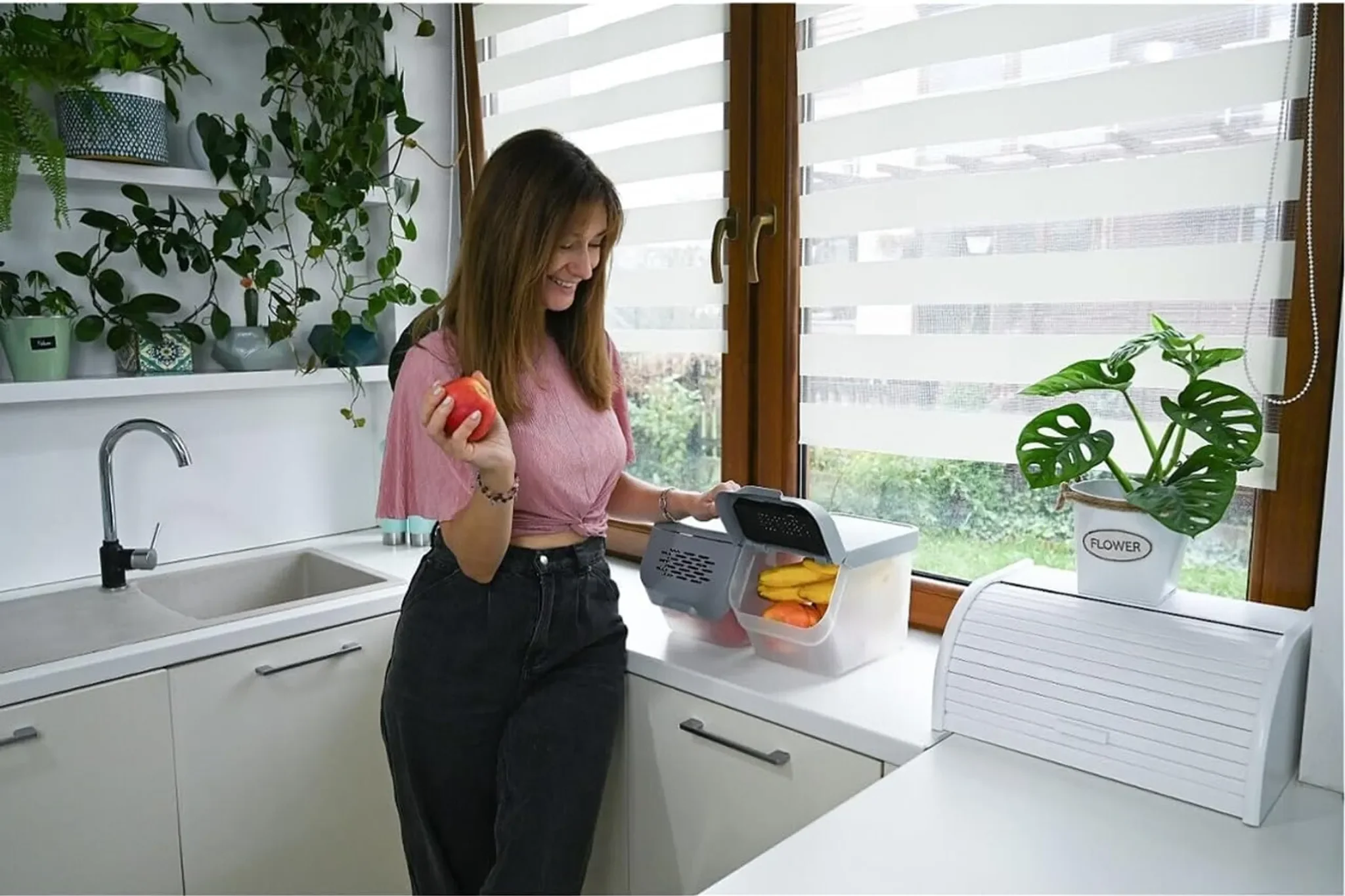 Dieser praktische Behälter mit 10 Litern Fassungsvermögen eignet sich ideal zur Lagerung und Organisation von frischem Obst und Gemüse. Der innovative Klickdeckel ermöglicht einen schnellen, komfortablen Zugriff und unterstützt eine hygienische Aufbewahrung im Küchenalltag.