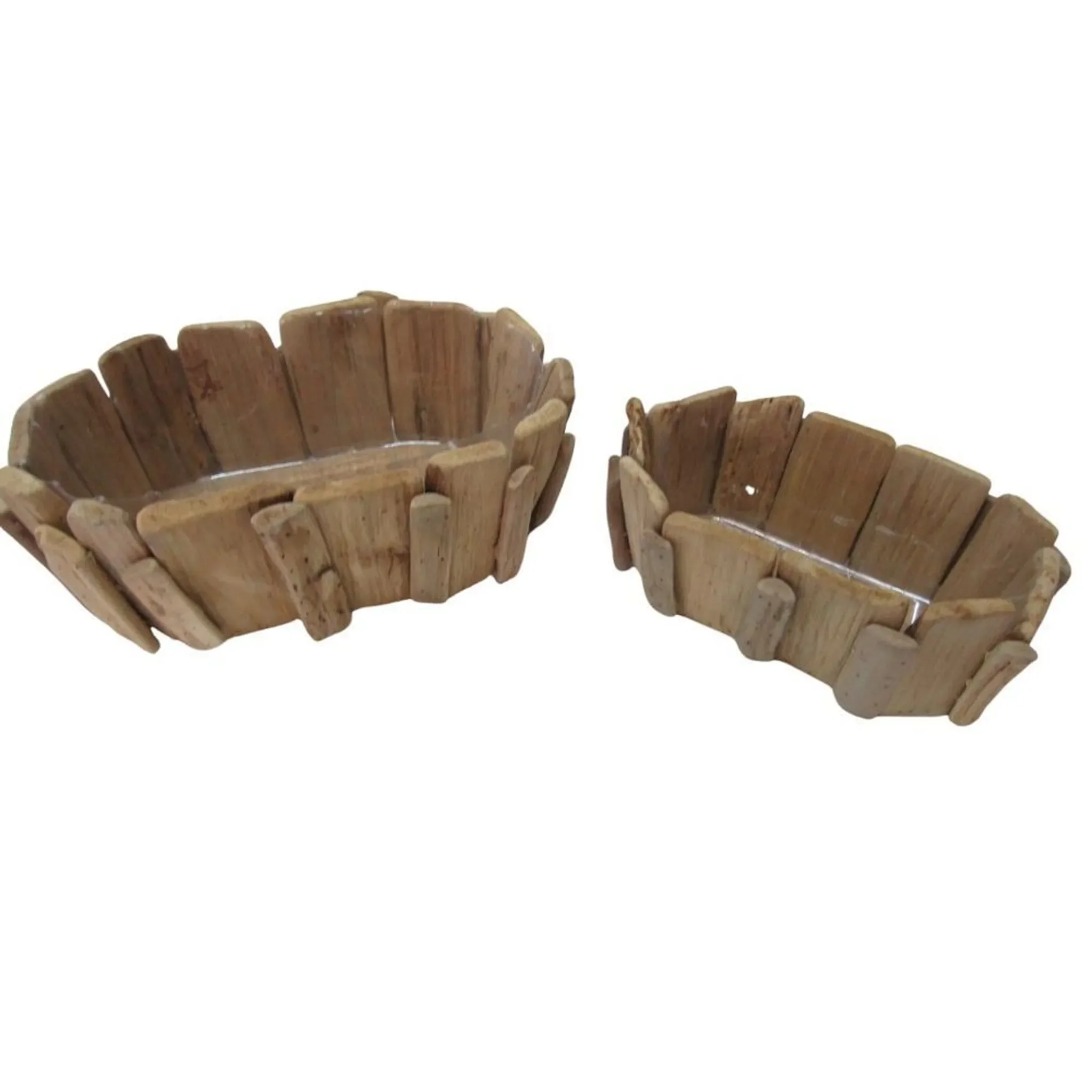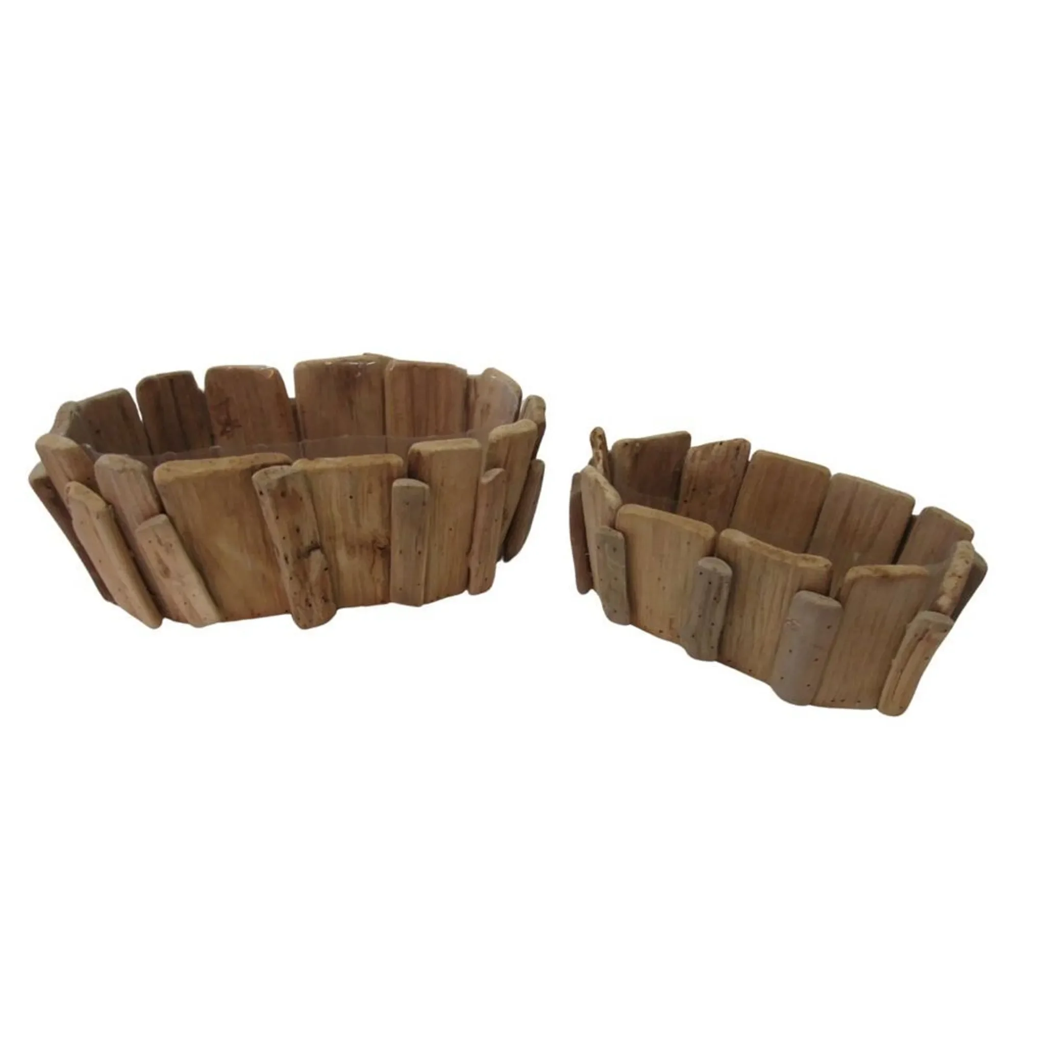Pflanzschalen oval – 2er-Set, Treibholz-Optik