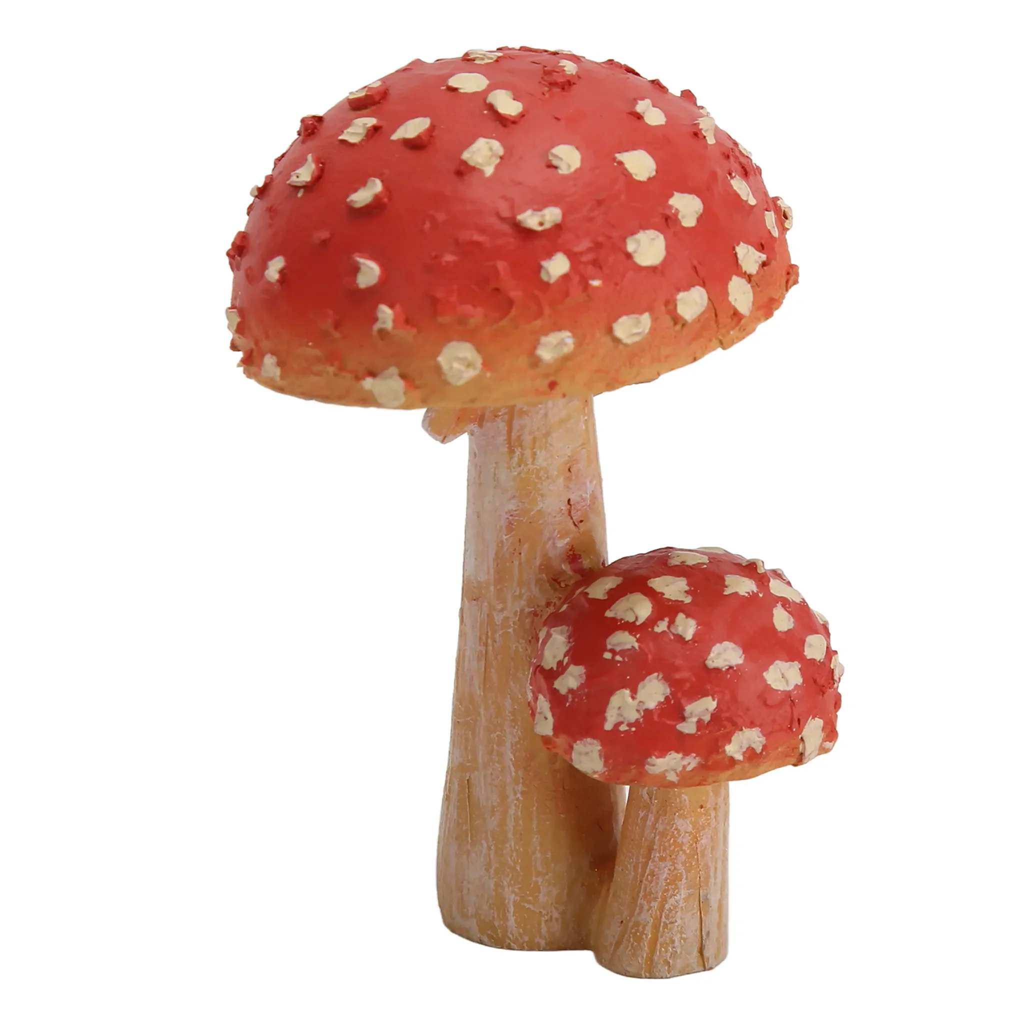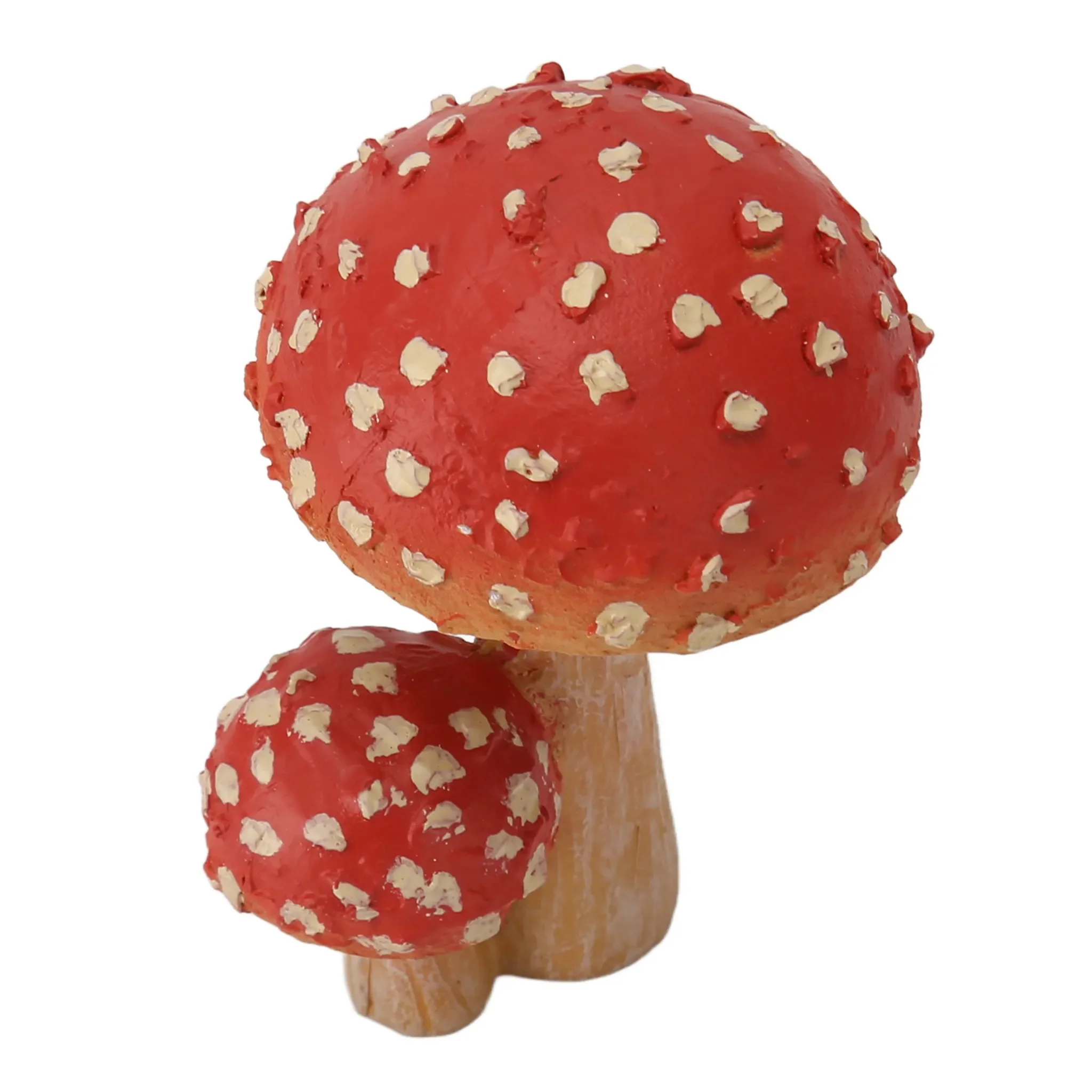 Diese dekorative Pilzfigur besteht aus einem großen und einem kleinen Pilz und sorgt mit ihrem verspielten Design für einen besonderen Blickfang. Die harmonische Kombination macht sie zu einer charmanten Ergänzung für Garten, Terrasse oder Wohnräume.
