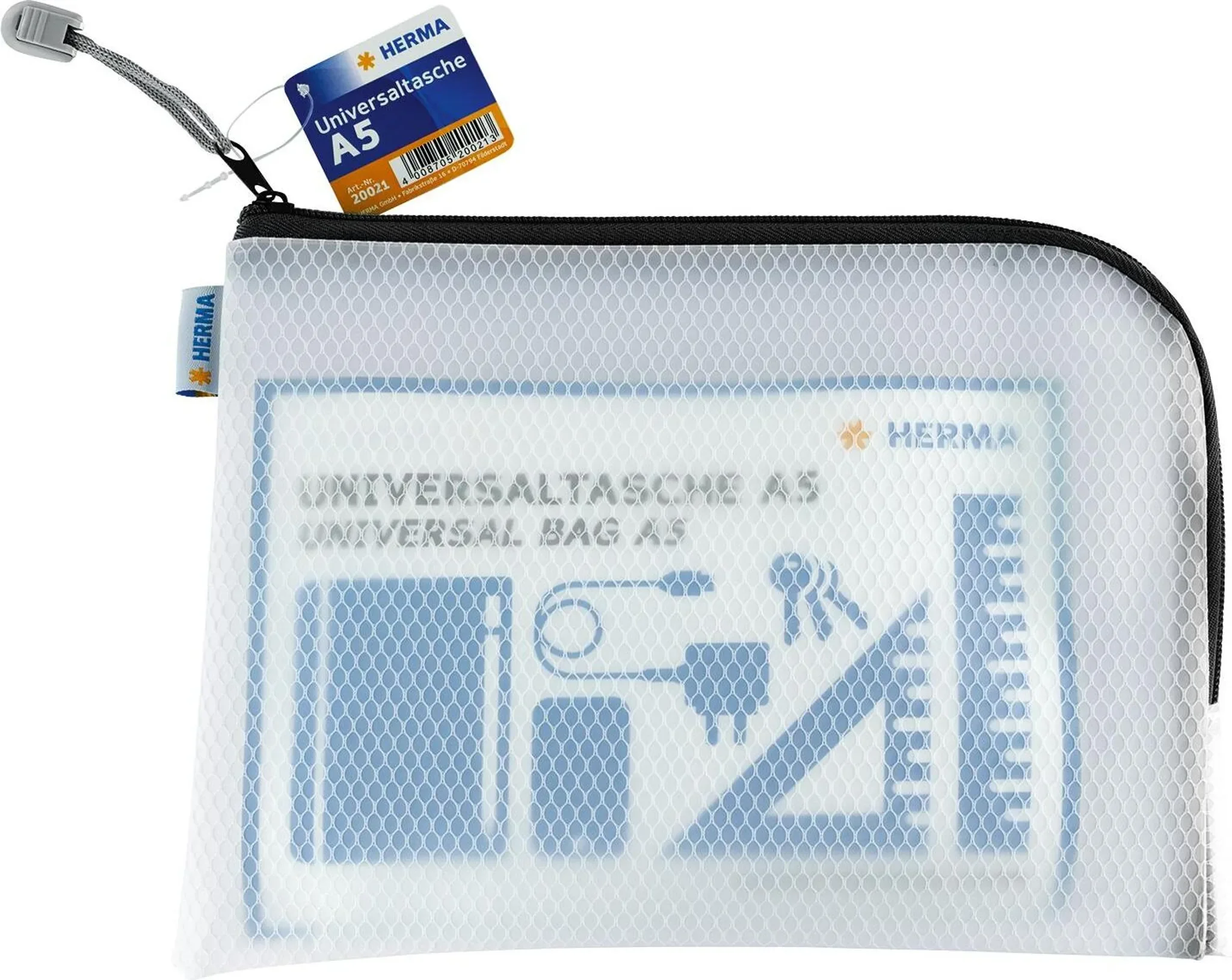 Highlights: Abriebfestes Material, schneller Überblick durch Transparenz, leichtes Öffnen durch umlaufenden Reißverschluss, vielseitig einsetzbar.
