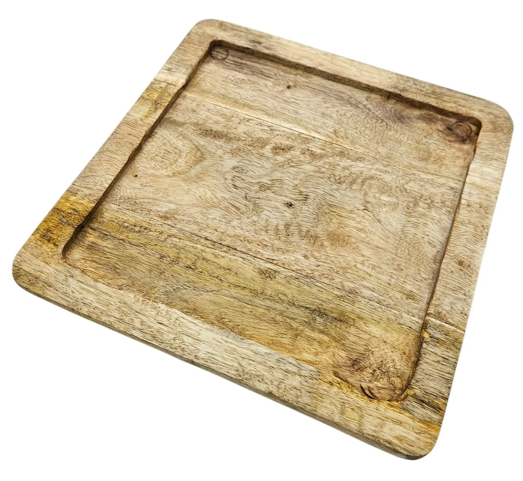Tablett aus Mangoholz – Holztablett 24 × 24 cm, hellbraun