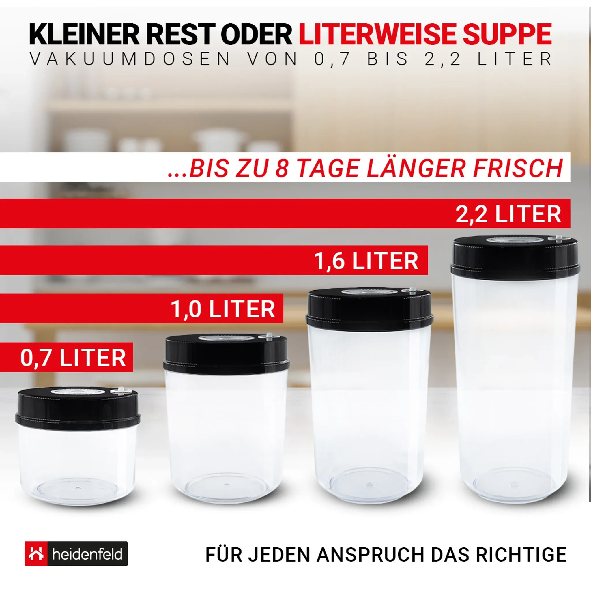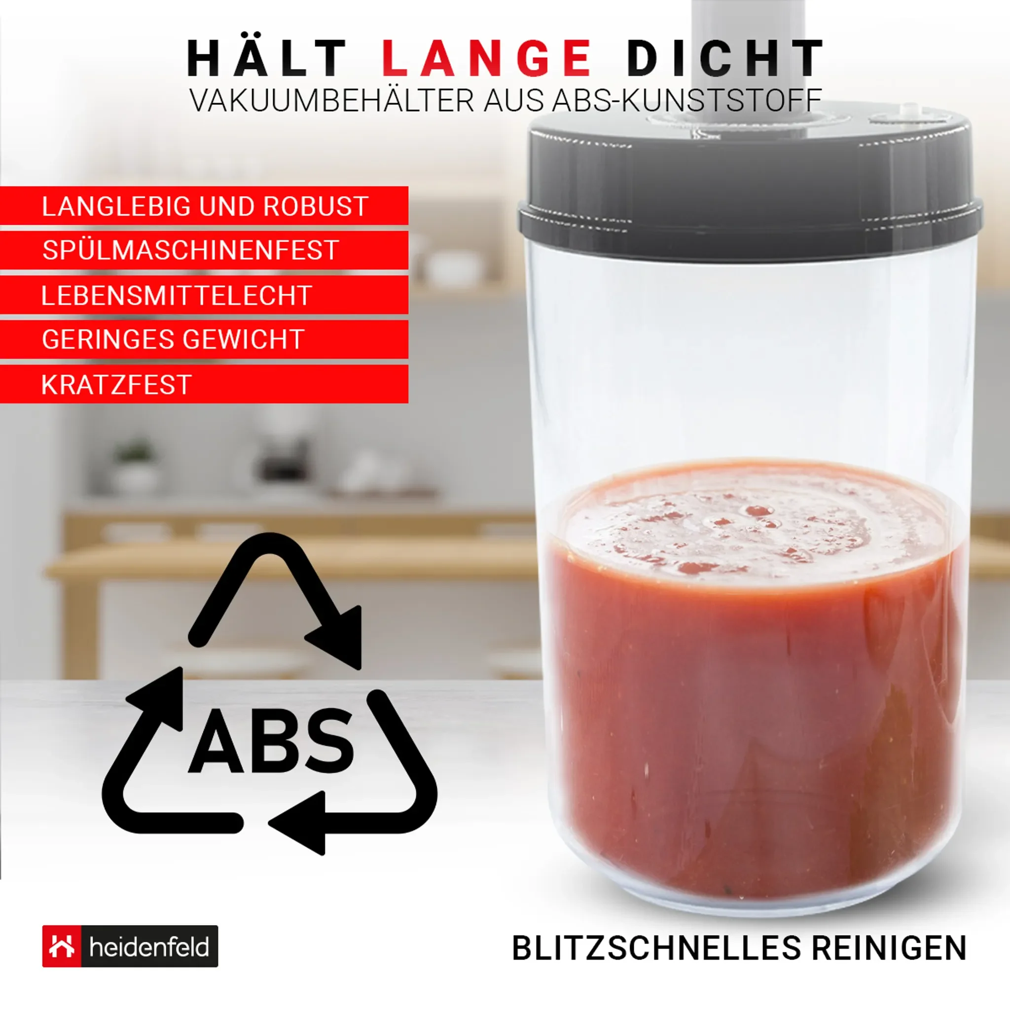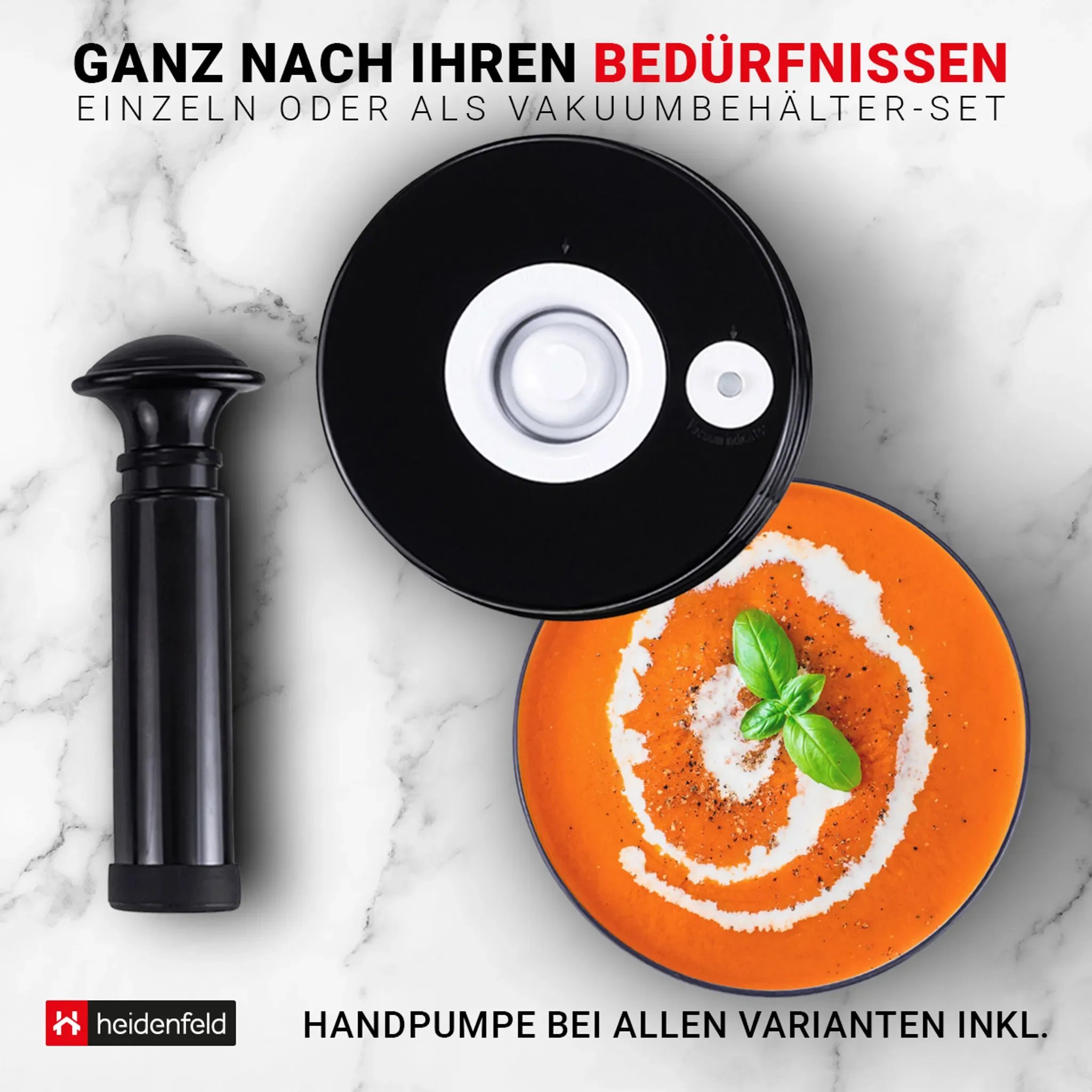 Highlights: Längere Frische durch Vakuum, einfache Handhabung mit Pumpe, platzsparend stapelbar, ideal für Küche & unterwegs.