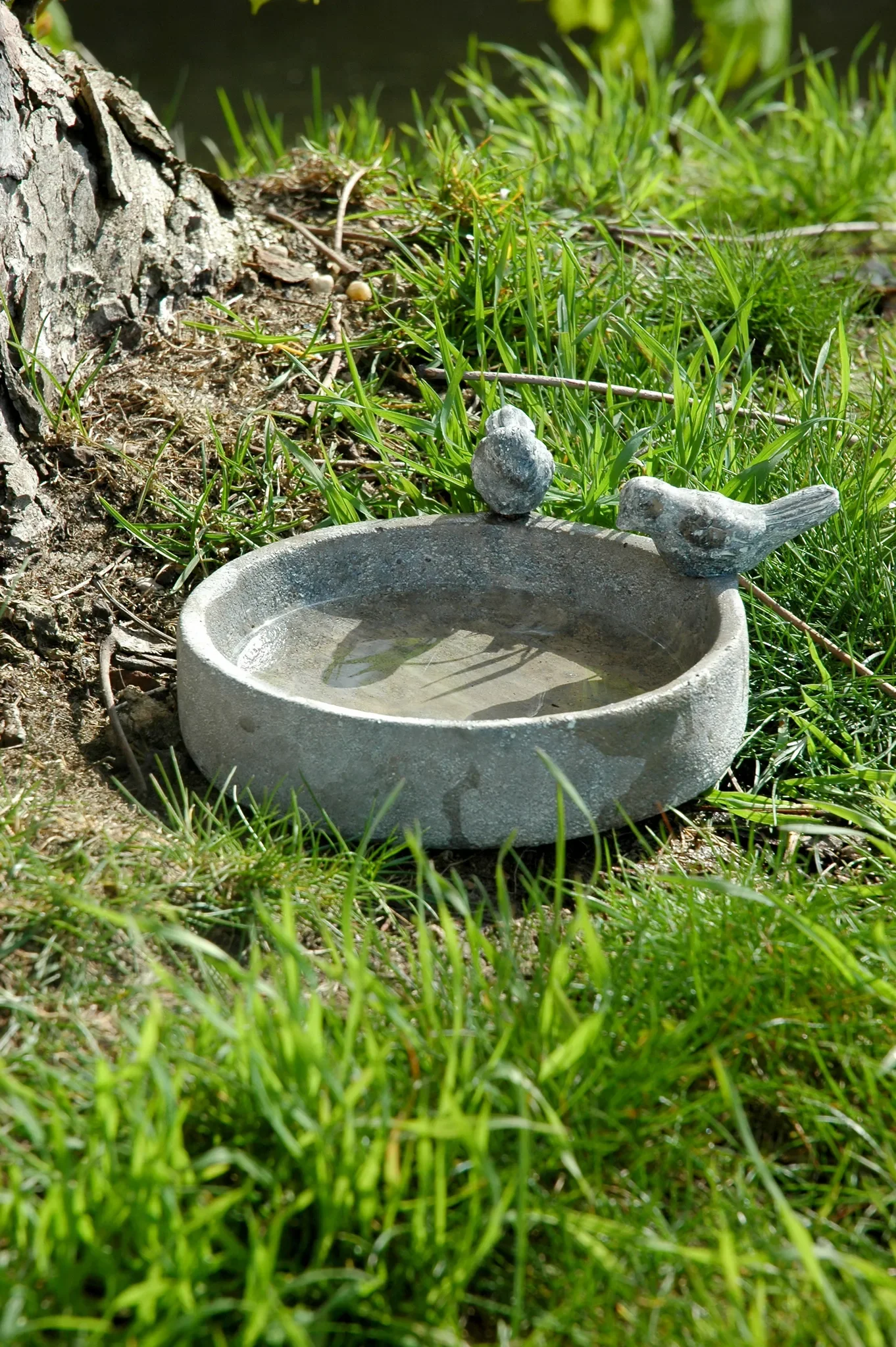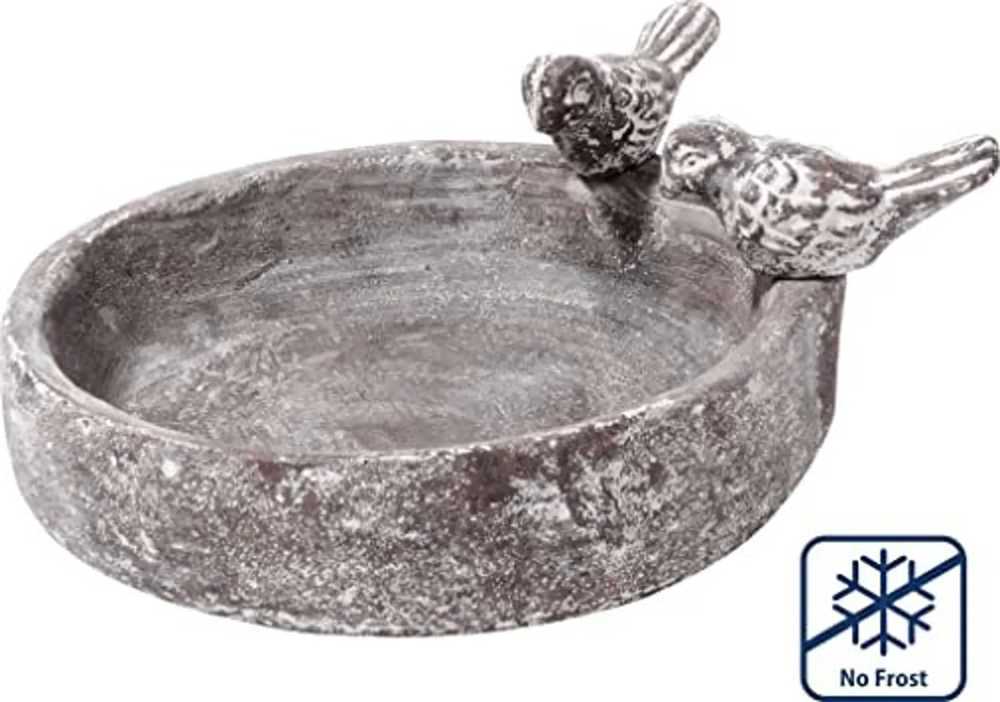 Gefertigt aus witterungsbeständiger Keramik überzeugt das Vogelbad durch Stabilität und Langlebigkeit. Die antik anmutende Oberfläche sowie zwei dekorative Vögel am Rand verleihen der Tränke einen charmanten, dekorativen Charakter – auch ohne Badegäste ein schöner Blickfang.